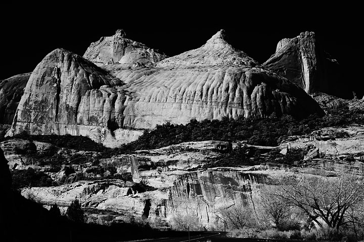 Blue IR Sky San Diago Mission, by channel swapping Dec 4. Utah Rocks ![]() Capitol of Rocks Capitol Reef National Park, Utah Nikon D90Infrared, 18-105 kit lens I have been to Utah many times. Get up early, stay late, for the first and last light. The rock glows, like melting glass. Still remember the first sight of the Delicate Arch. During the day, when the light is harsh, I used to do scouting, or get ready (by taking naps). ![]() Roadside Rocks Capitol Reef National Park, Utah Nikon D90Infrared, 18-105 kit lens With IR, the bright light the better. Rocks under direct sun light will be much bright than the rocks in the shadow, thus very contrasty. If there is no cloud, the sky will be black; if there are clouds, then will be white on black! These keep me busy all day long... ![]() Metal Leaves Near a Scenic Turnout Capitol Reef National Park, Utah Nikon D90Infrared, 18-105 kit lens Even when take a break, there are always interesting thing to shoot...